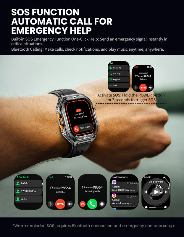 1.96 Inch Touch Screen Smart Watch with 5ATM Waterproof Rating, Fitness Tracking and App Support