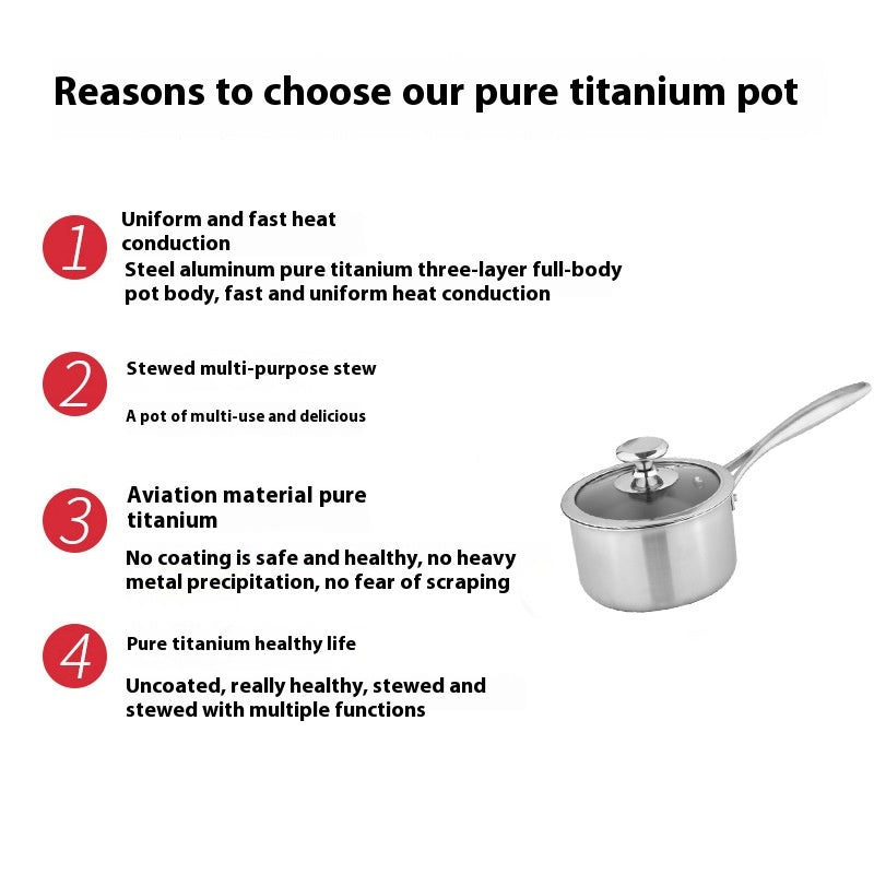 • Pot Body Material: Titanium + Aluminum + Stainless Steel
