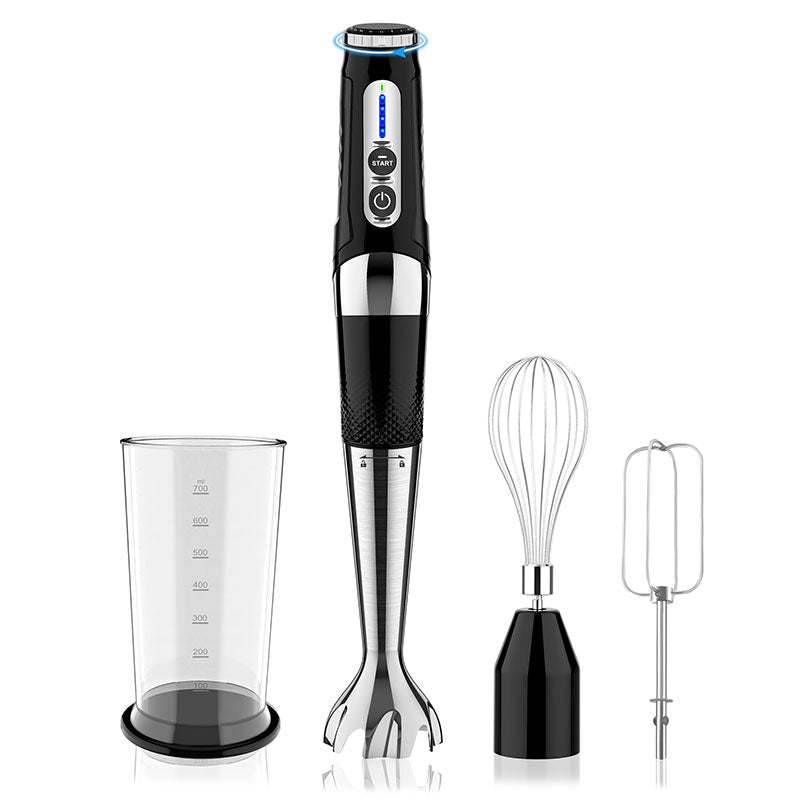 This cordless hand blender is designed for everyday kitchen tasks where flexibility and convenience matter. Featuring a rechargeable battery and a compact, ergonomic build, it allows easy blending, whisking, and mixing without being restricted by cords or fixed angles. The multi-angle operation enables comfortable use across different containers, while the variable speed control offers better precision for a wide range of ingredients. With a stainless steel blending shaft and included accessories, this versatile 4-in-1 set is suitable for preparing sauces, smoothies, batters, and other recipes with controlled performance and efficient handling.