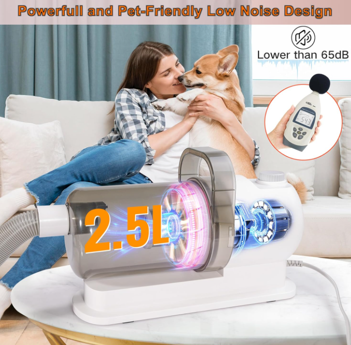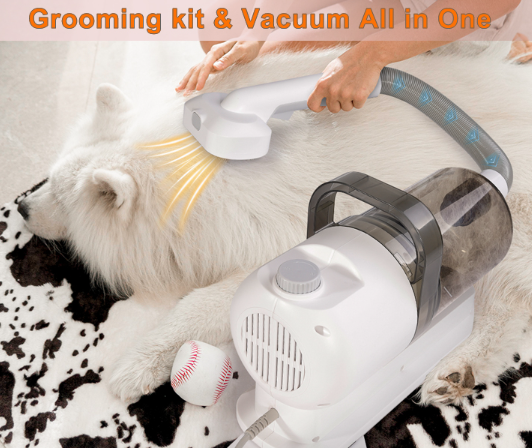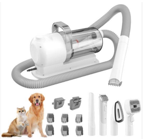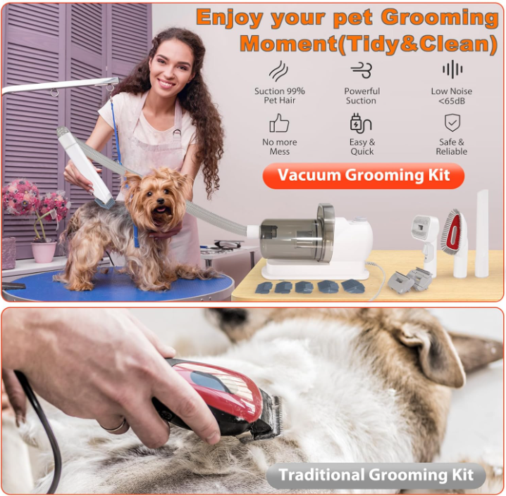 6-in-1 Cordless Pet Grooming Vacuum Kit – Hair Suction Clipper with 6 Guide Combs