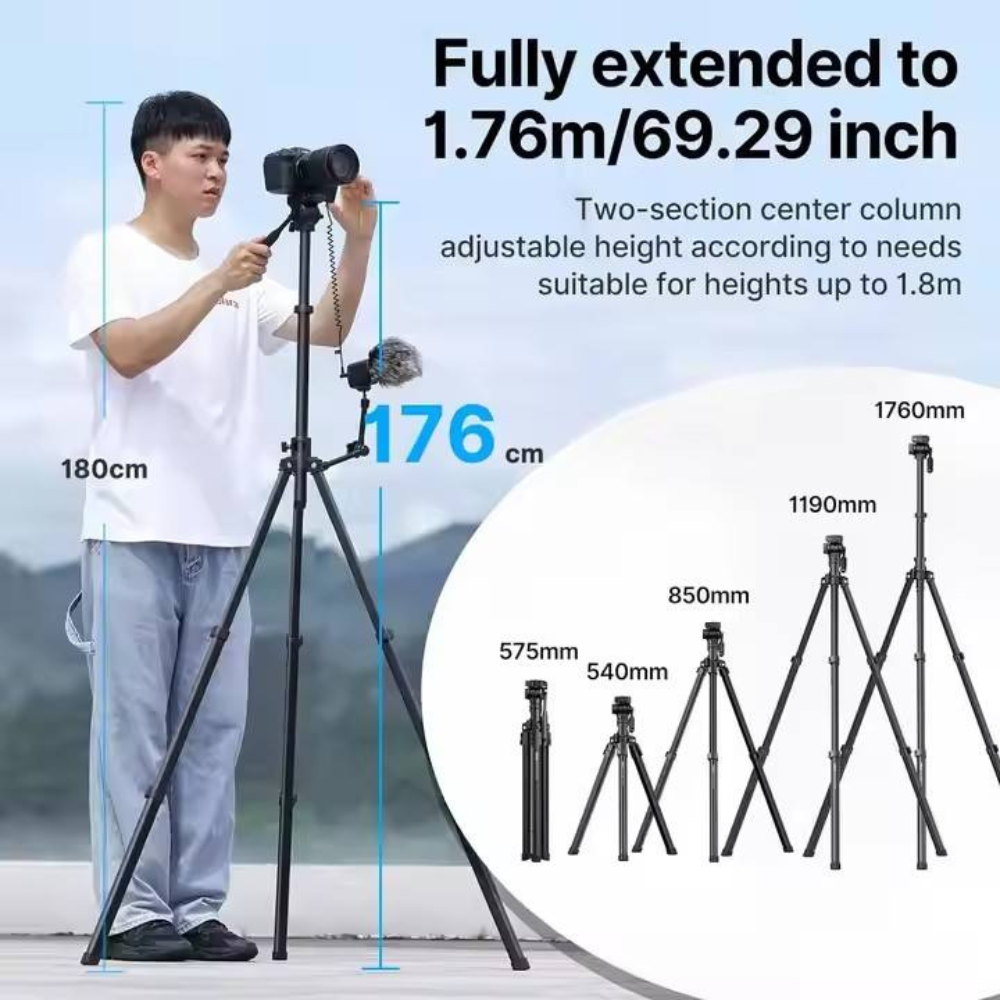 69" Overhead Aluminum Tripod for Filming, Travel Photography & Top-Down Shots