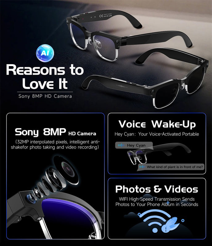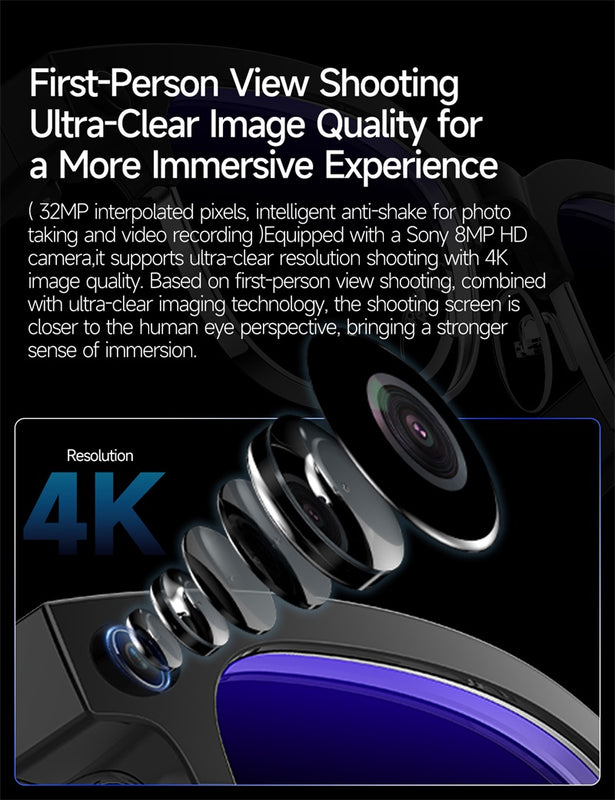 Bluetooth Smart Glasses with Open-Ear Audio, IP66 Waterproof, 6–7H Playback, Lightweight Design