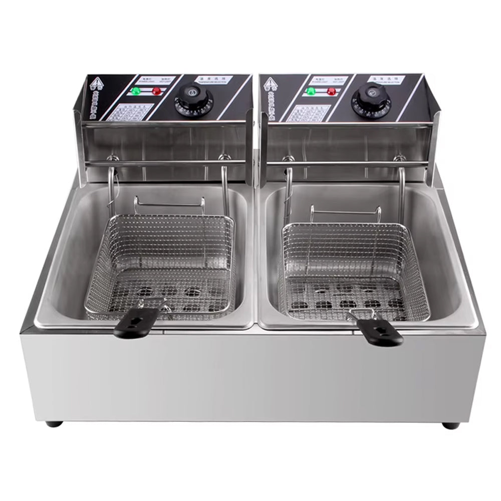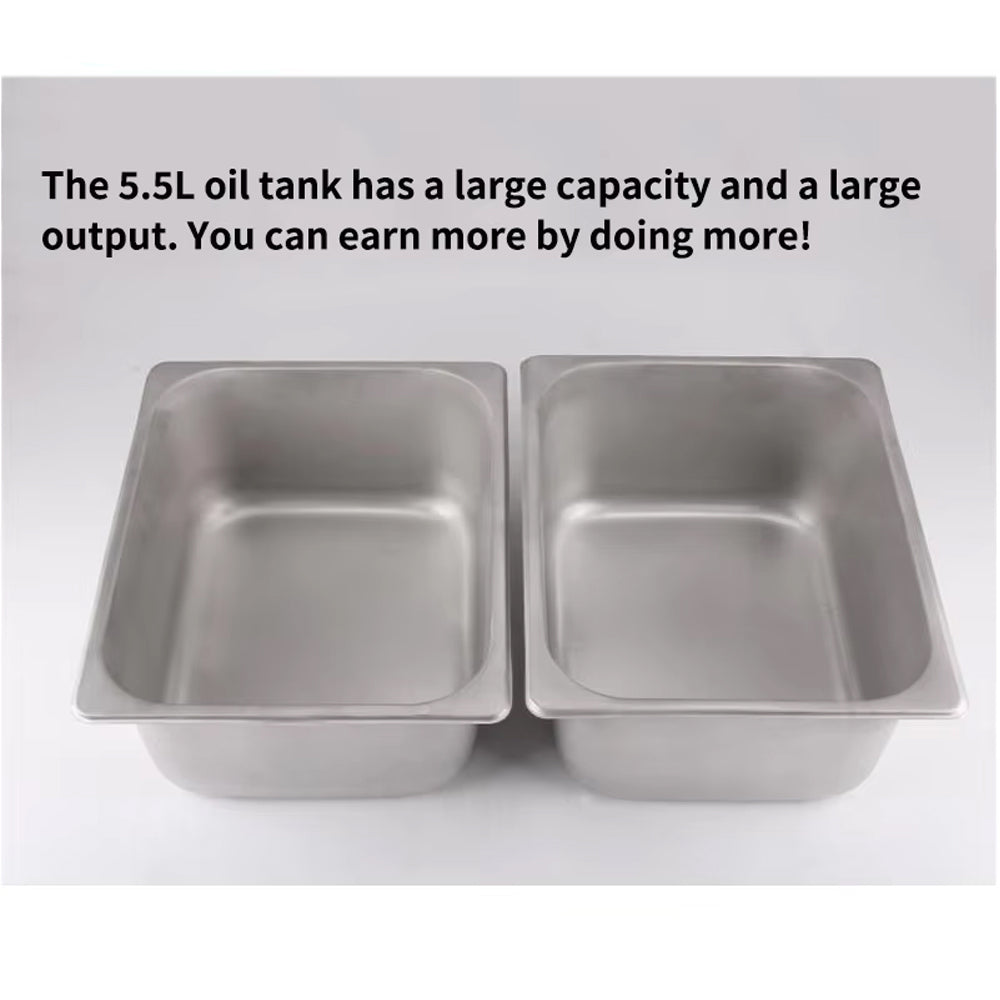 Dual-basket / dual-tank setup (6L + 6L): fry two foods at once for faster output