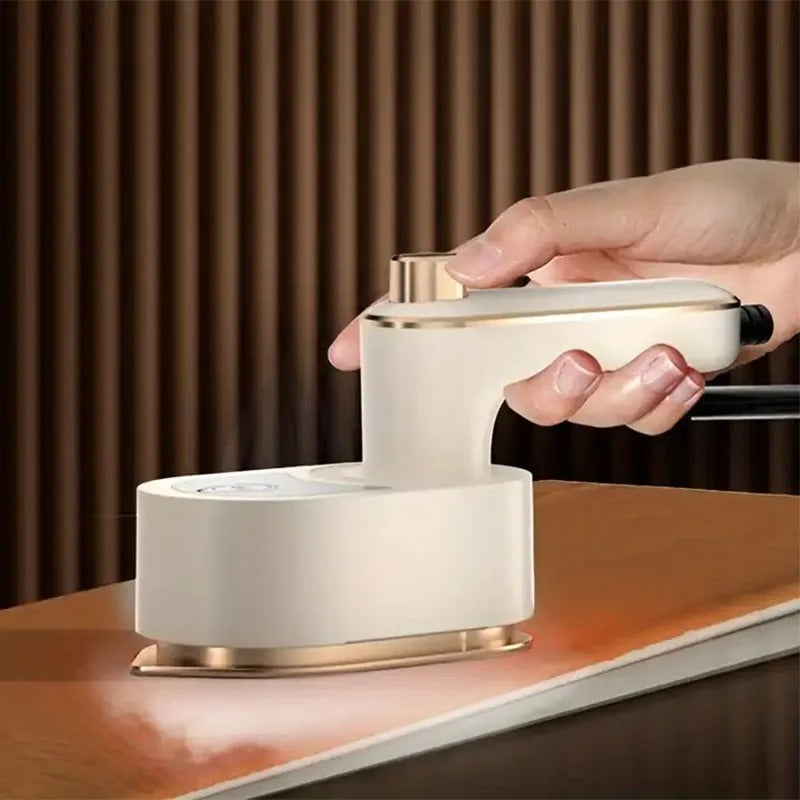 Compact Travel Folding Iron – Mini Adjustable Heat Portable Beige Design
