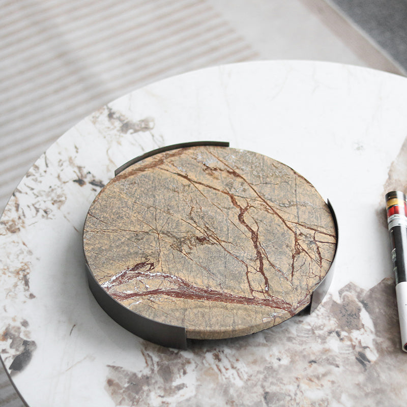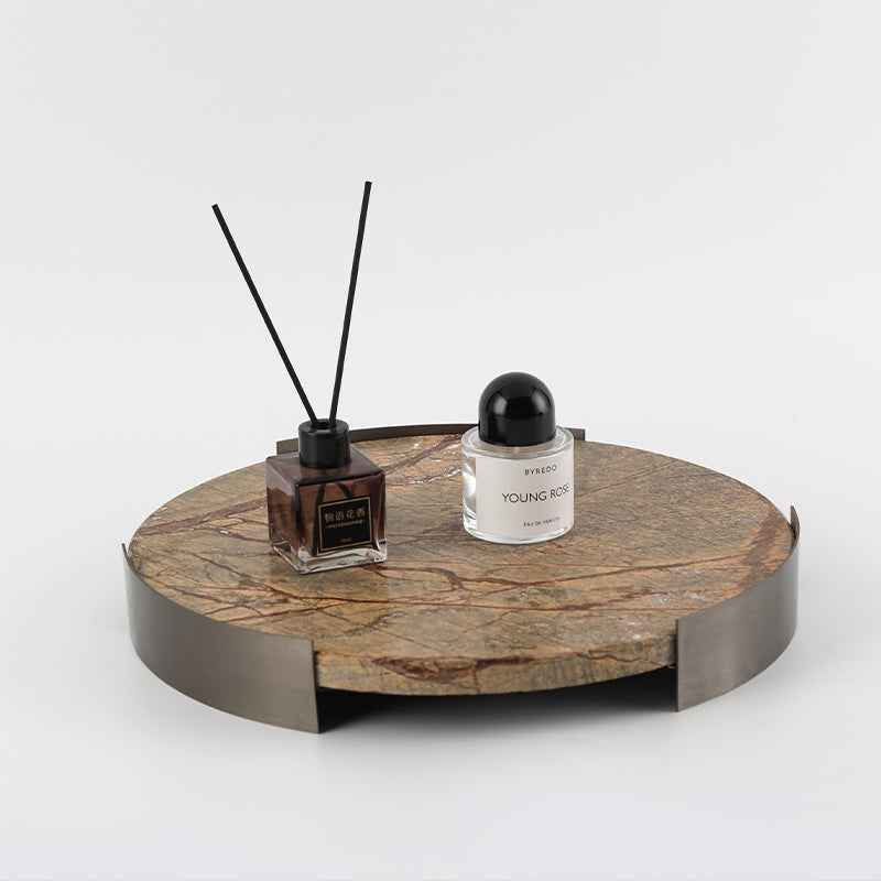 Elegant Round Marble Plate with Metal Stand – Tabletop Dining and Serving Tray