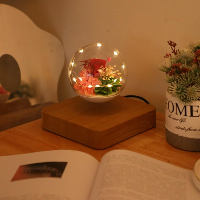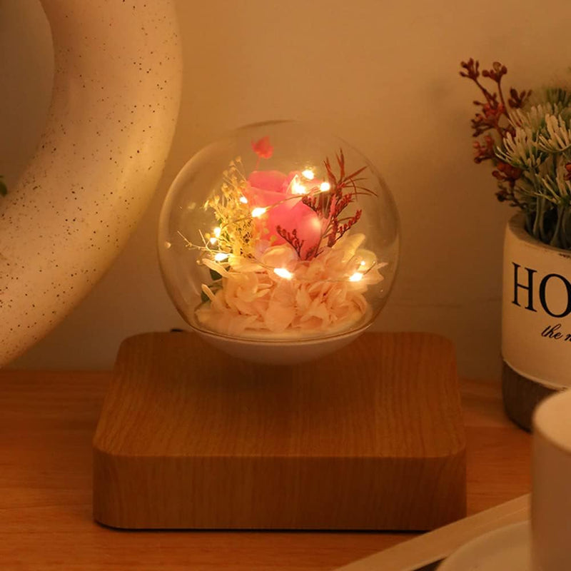 Floating LED Rose Light with Rotating Levitating Base – Decorative Eternal Flower Lamp for Home & Office