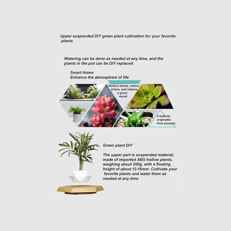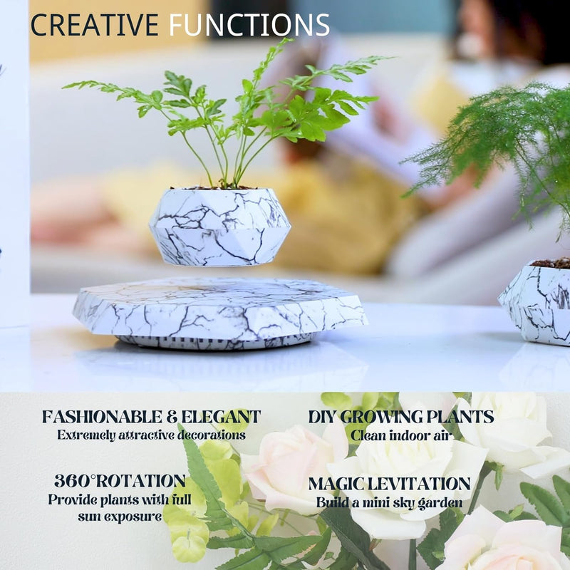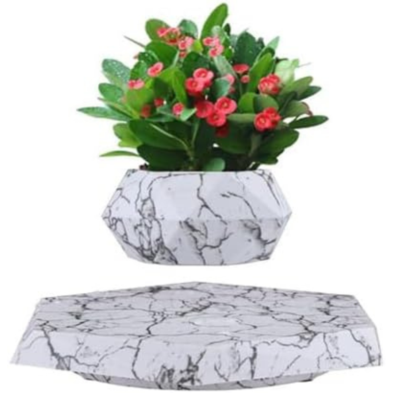 Floating Plant Pot with Magnetic Levitating Base – Rotating Imitation Marble Display for Home and Office
