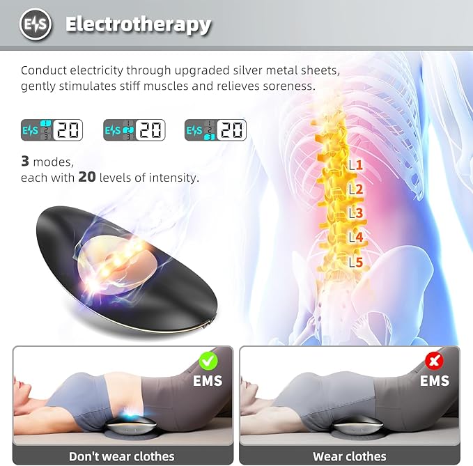 Home Back Stretcher & Electric Lumbar Massager with Infrared and EMS – Black