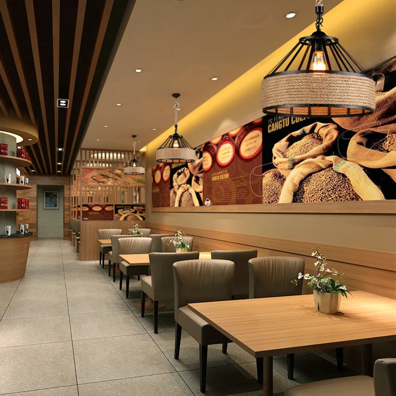 Industrial Rope Pendant Light – Vintage Antique Style Ceiling Lamp