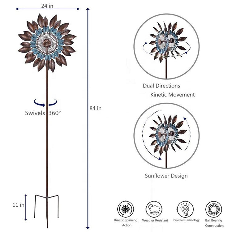 Large Sunflower Kinetic Wind Sculpture Garden Spinner Outdoor Decor 213cm