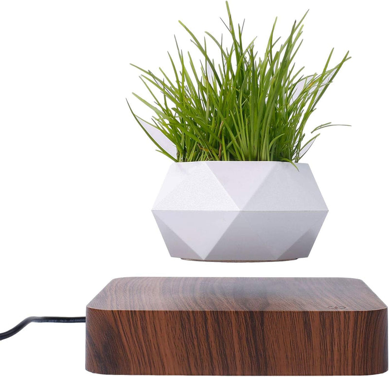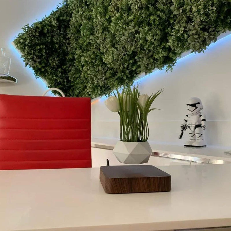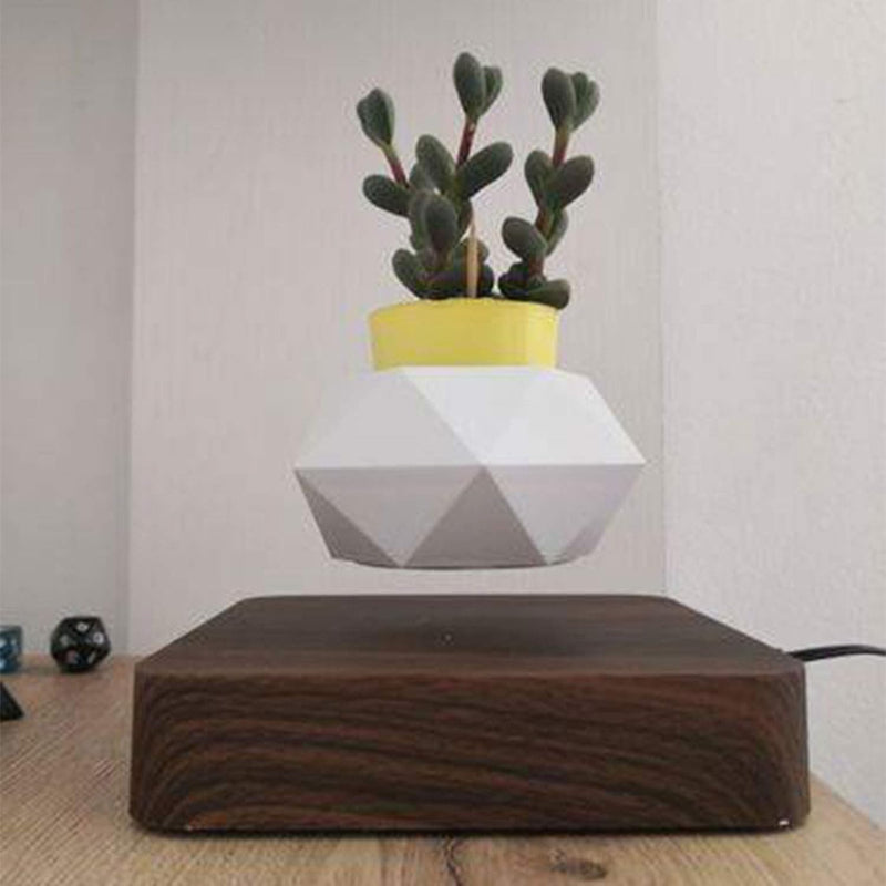 Levitating Floating Plant Pot with Wooden Base 360° Rotating Indoor Planter