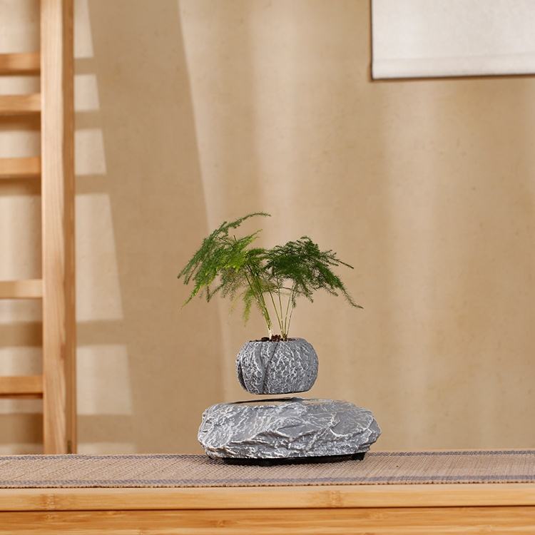 Levitating Floating Planter with Rotating Grey Resin Pot – Modern Indoor Desk & Home Decor
