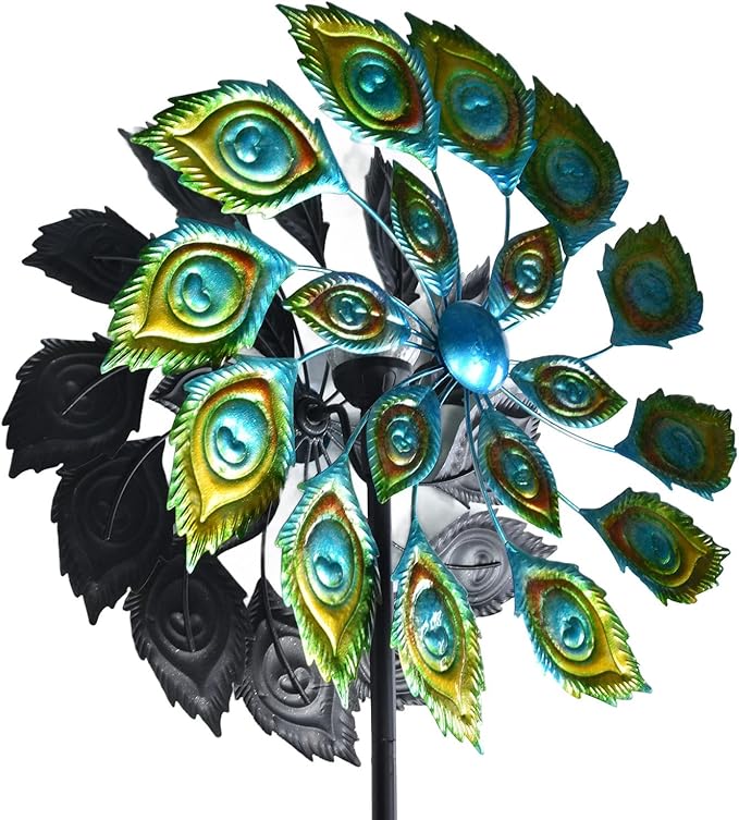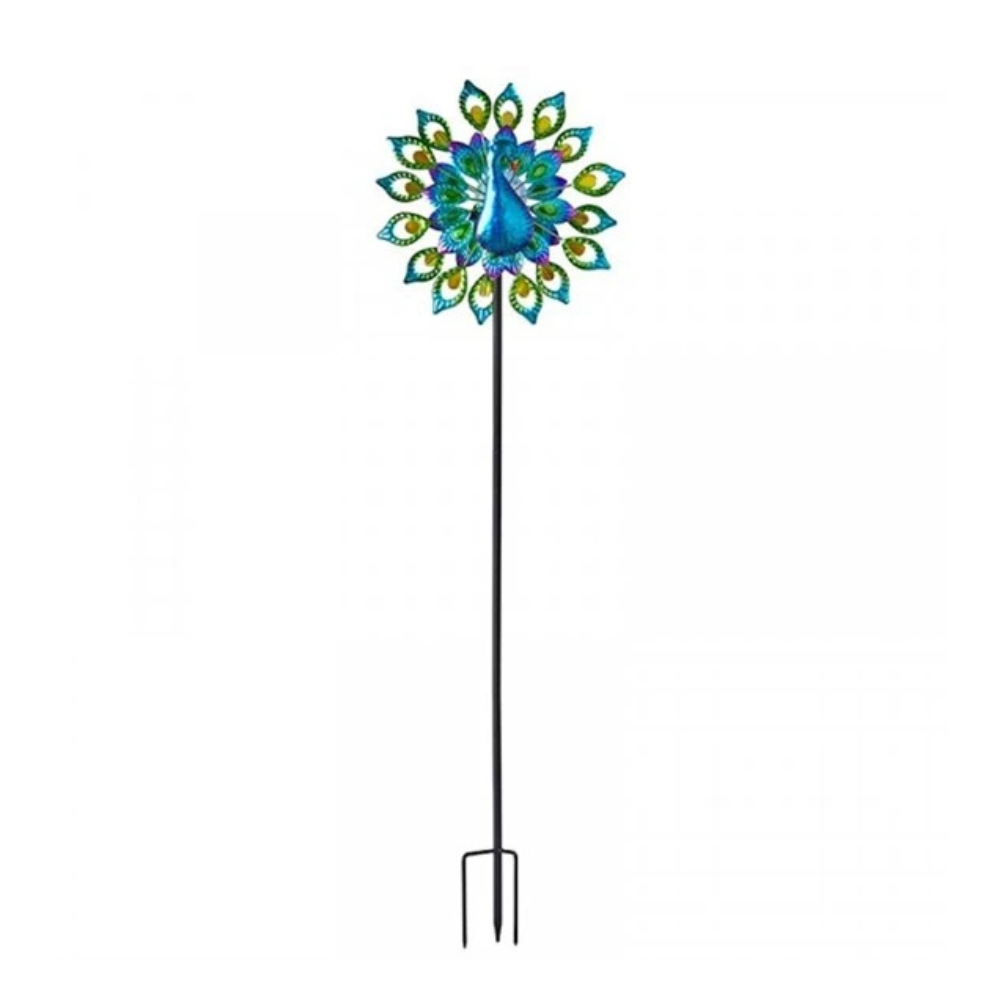 Metal Peacock Wind Spinner with Multi-Colour Rotating Blades and Solar Lights – 200cm Garden Decoration