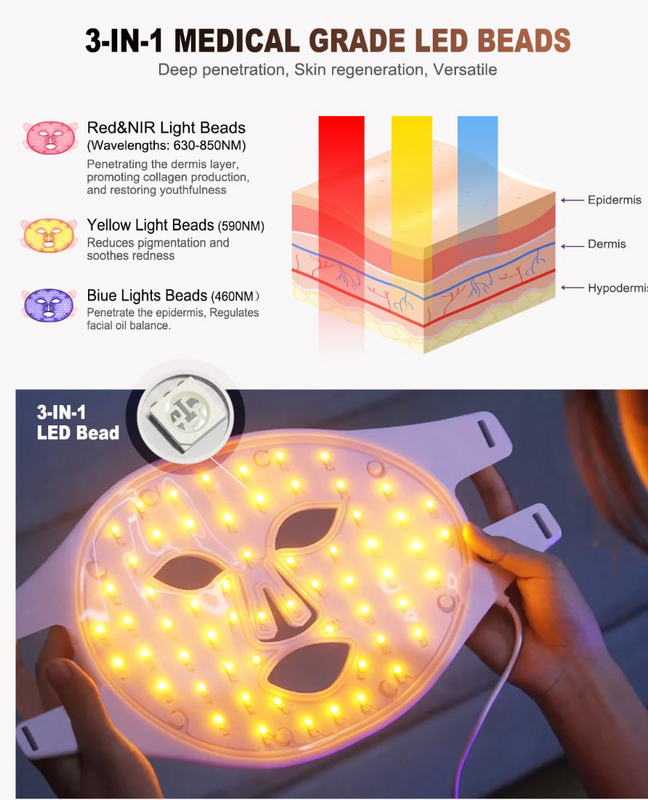 Portable 7-Colour LED Facial Therapy Mask Silicone Handheld Photon Skin Care Device