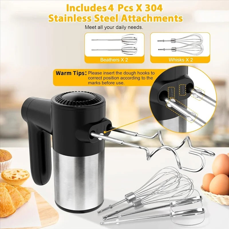 Portable Cordless Hand Mixer 7-Speed Rechargeable Design with Storage Base