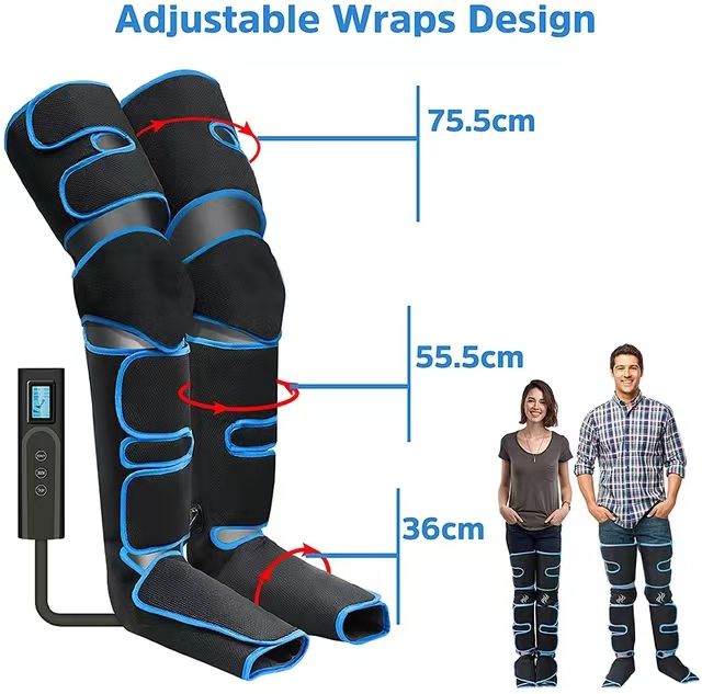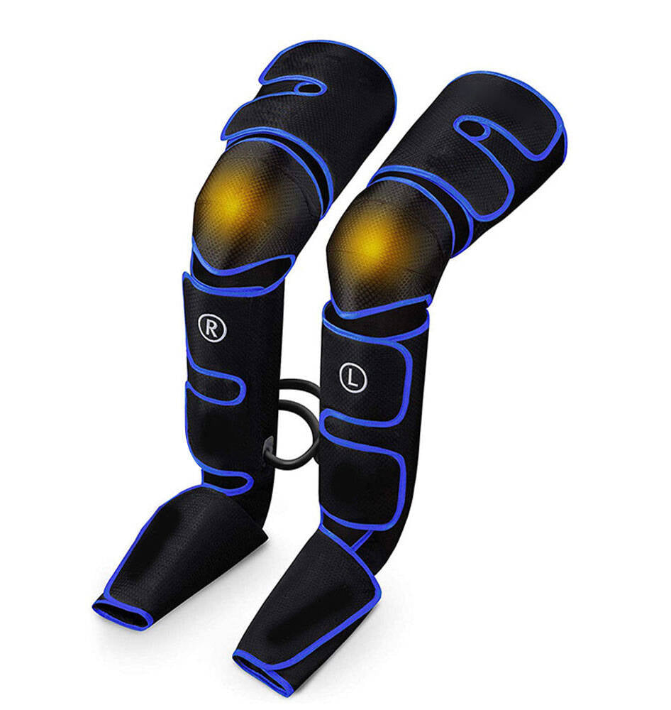 Rechargeable Air Compression Leg and Foot Massager with Heat Therapy – 6 Modes, 3 Intensities, Black Blue