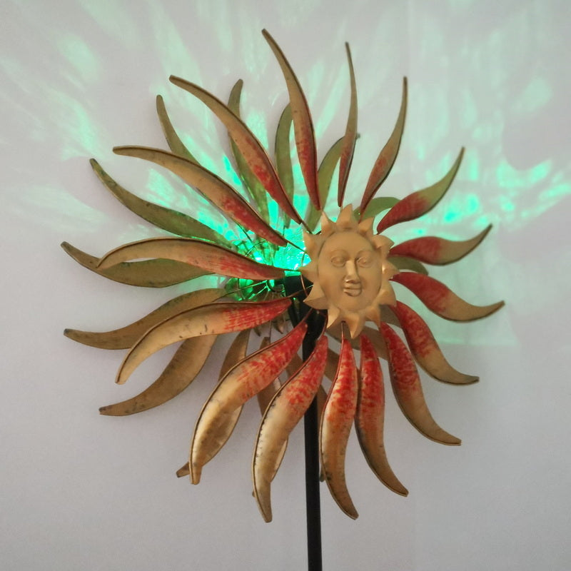 Solar Metal Sun Face Wind Spinner with Colour-Changing LED for Garden and Outdoor Decor