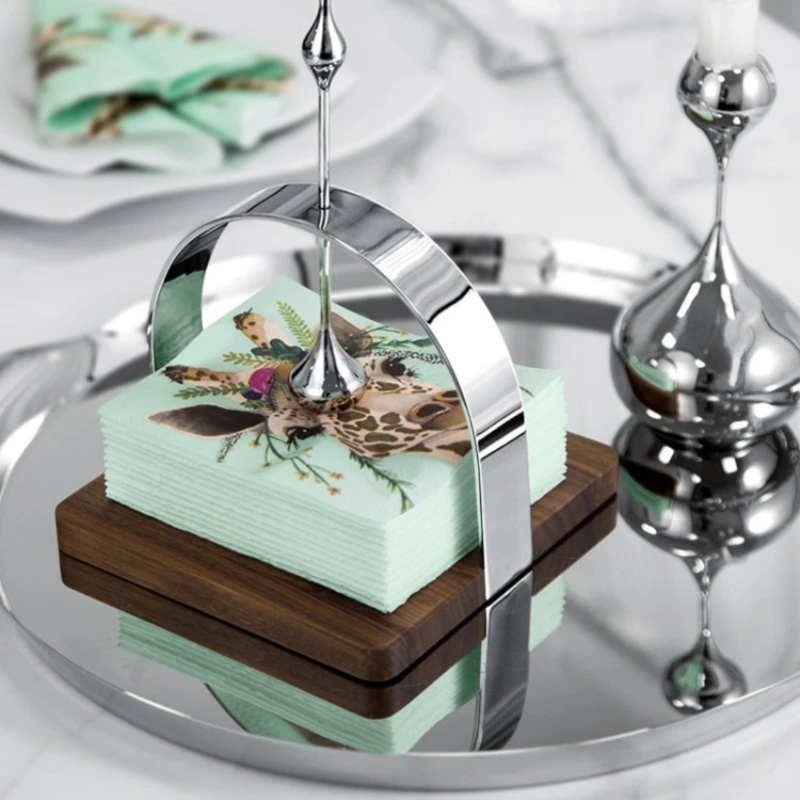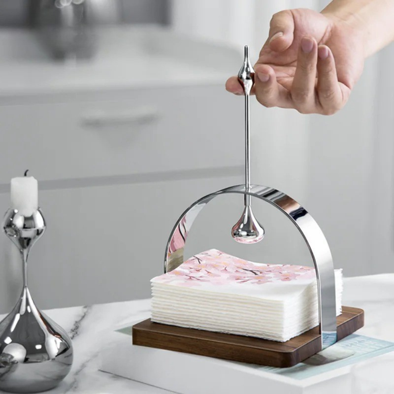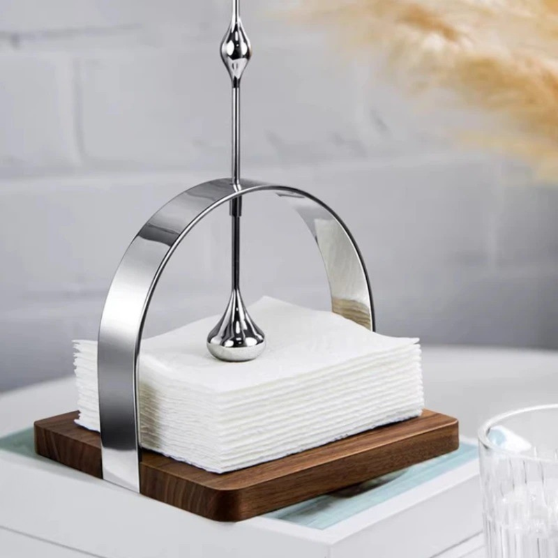 Stainless Steel Tissue Box Holder with Walnut Base – Modern Desk and Home Decor