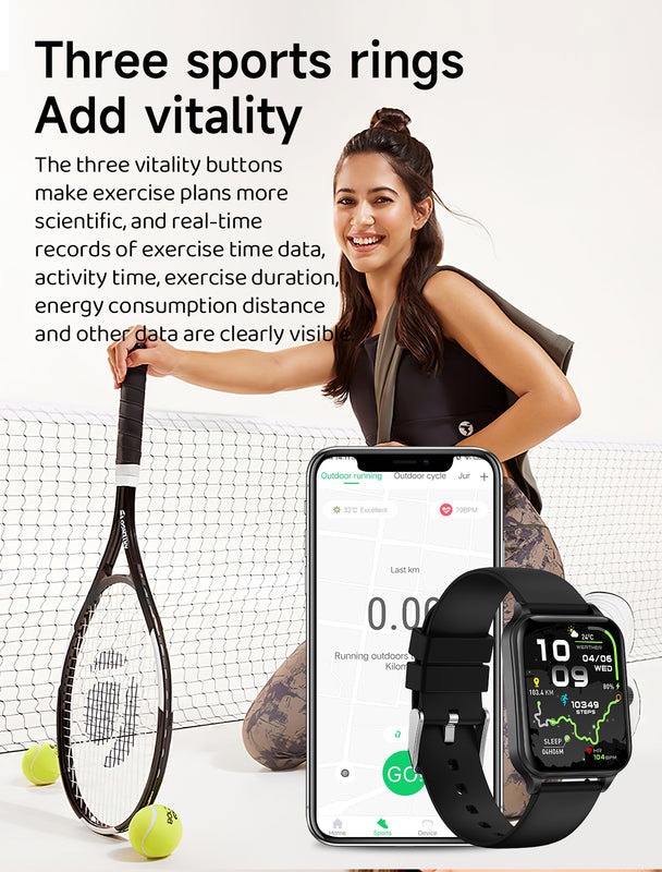 This smart watch supports fitness and sleep monitoring to help you better understand your daily movement and rest patterns. With an IP67 waterproof rating, it is protected against splashes, sweat, and light water exposure, making it suitable for everyday use. Powered by a JL7012F5 chipset and compatible with the DaFit app, it allows you to sync activity data directly to your smartphone for easy tracking and review.