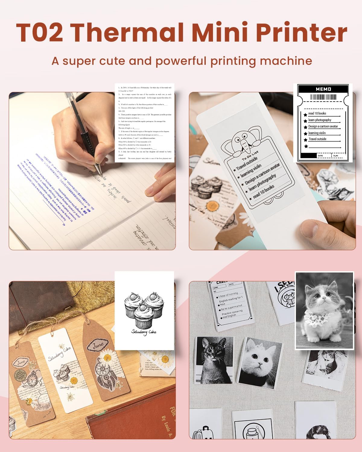 Travel-Friendly Pink Mini Printer | Wireless, Type-C Charging | 39m Thermal Print