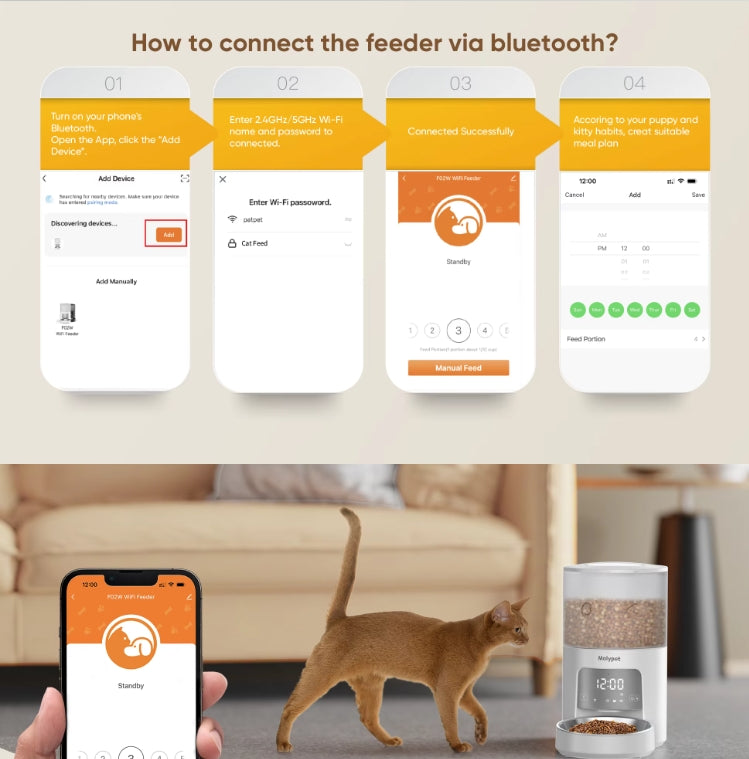 WiFi Smart Automatic Pet Feeder 4L with Stainless Steel Bowl & App-Controlled Scheduled Feeding